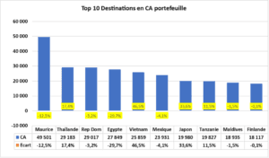 L'île Maurice reste en tête (+8%), suivie des États-Unis (+11,3%). Forte reprise en Asie (+28% en trafic). La République Dominicaine revient en troisième position.